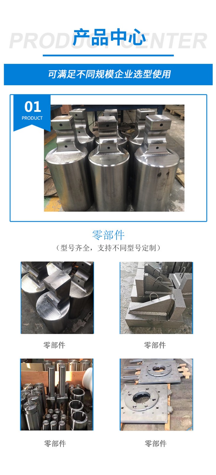 主要產(chǎn)品是大型機(jī)加工件,各種軸類(光軸,傳動(dòng)軸,花鍵軸),非標(biāo)零部件,開(kāi)卷線用減速機(jī),非標(biāo)鉚焊結(jié)構(gòu)件,